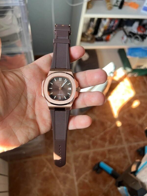 Ich habe sie für eine Nautilus aus Roségold gekauft. Sie passt perfekt und ist bequemer als das Metallarmband. Ich liebe den Kontrast, der die Uhr sportlicher wirken lässt.
