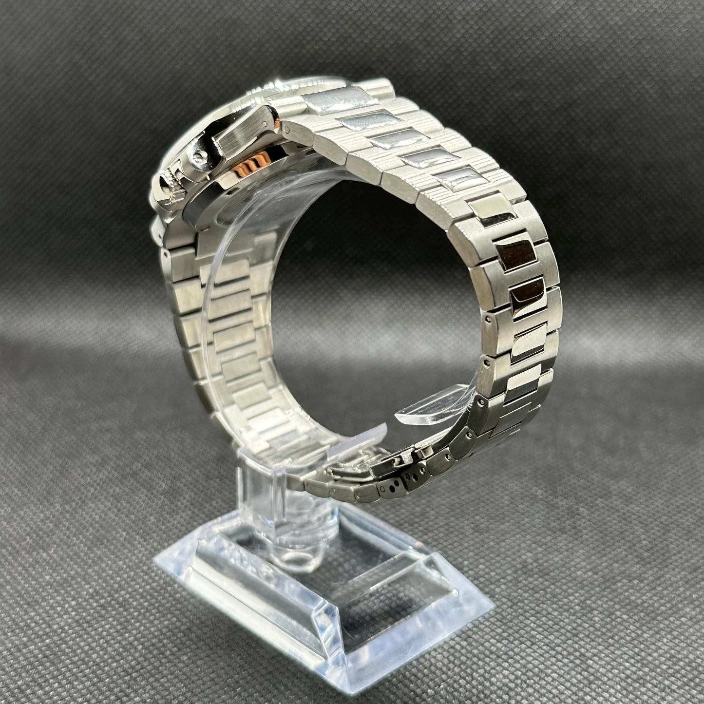 Correa: Pulsera de acero inoxidable con cierre de mariposa.