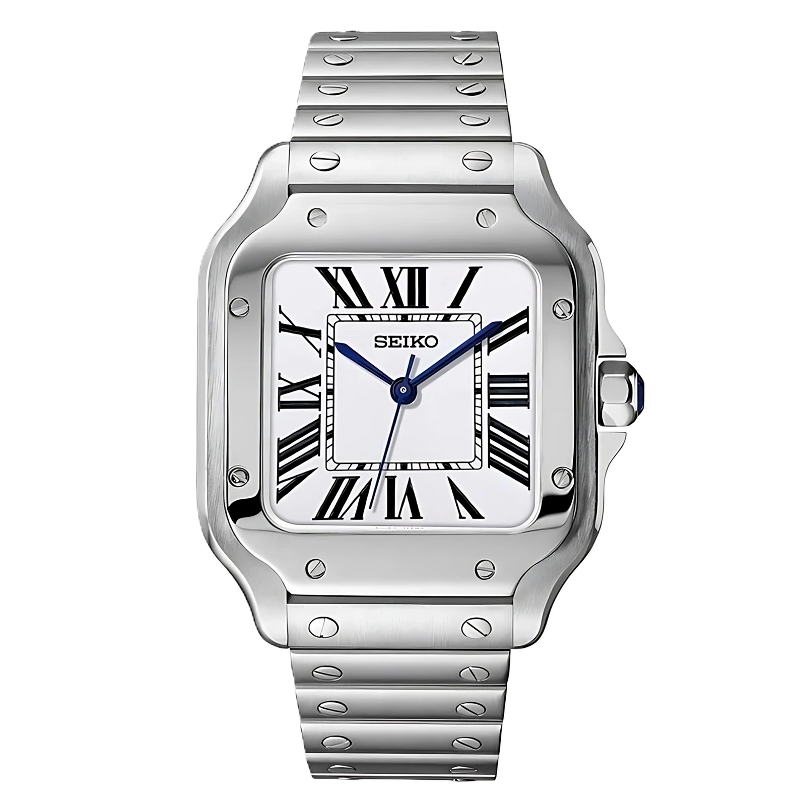Herederos de un diseño que marcó la historia, el Seiko Santos Mod elevan la elegancia a un nuevo nivel. Una pieza distinguida para quienes valoran la precisión y el lujo discreto.
