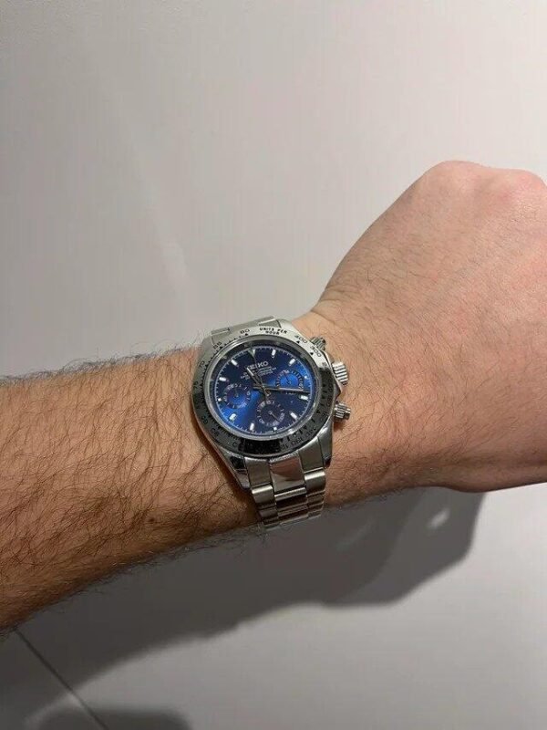 El segundero del cronógrafo funciona suave y se resetea de forma limpia. Se nota que el movimiento es bueno.