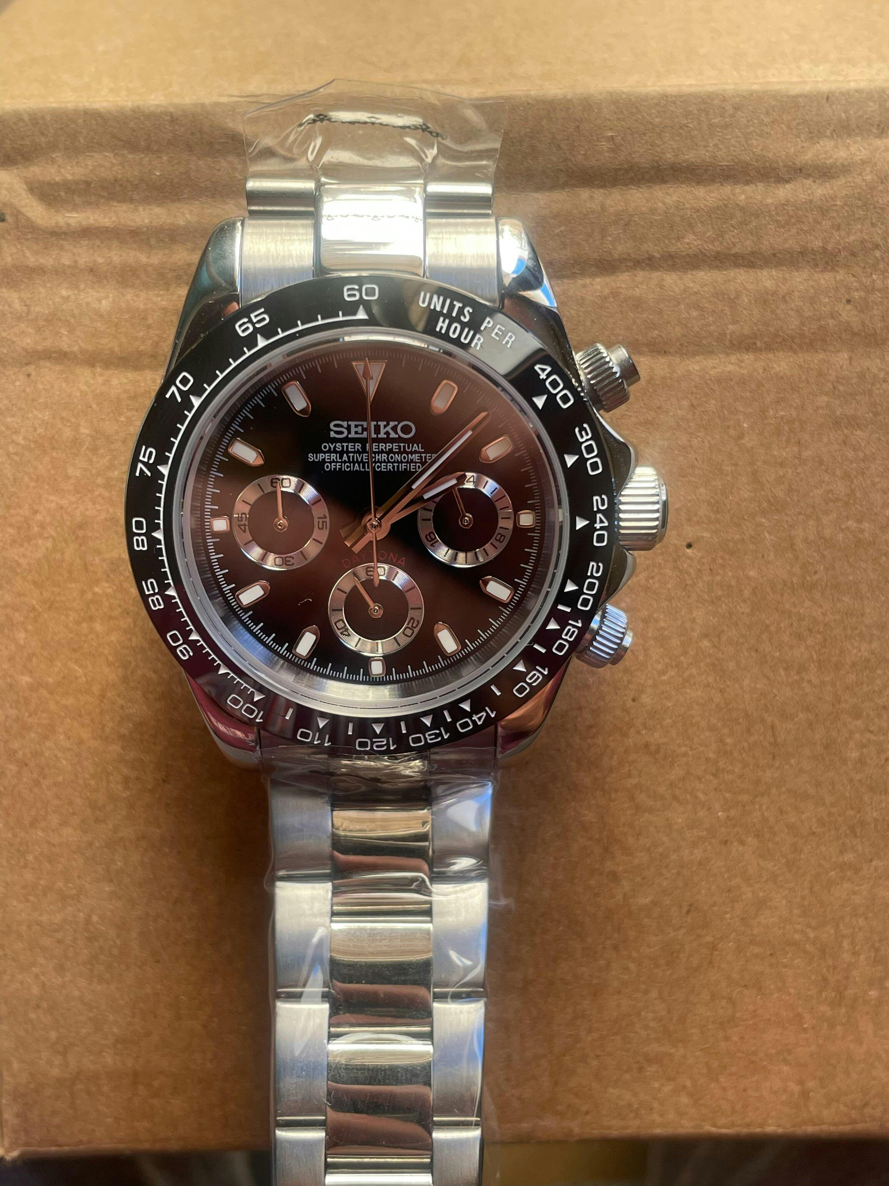 El reloj viene hasta con los plásticos de protección, muy buen detalle. me falta quitarle varios eslabones para ajustarlo bien a mi muñeca. Mañana sin falta a estrenarlo. 😁